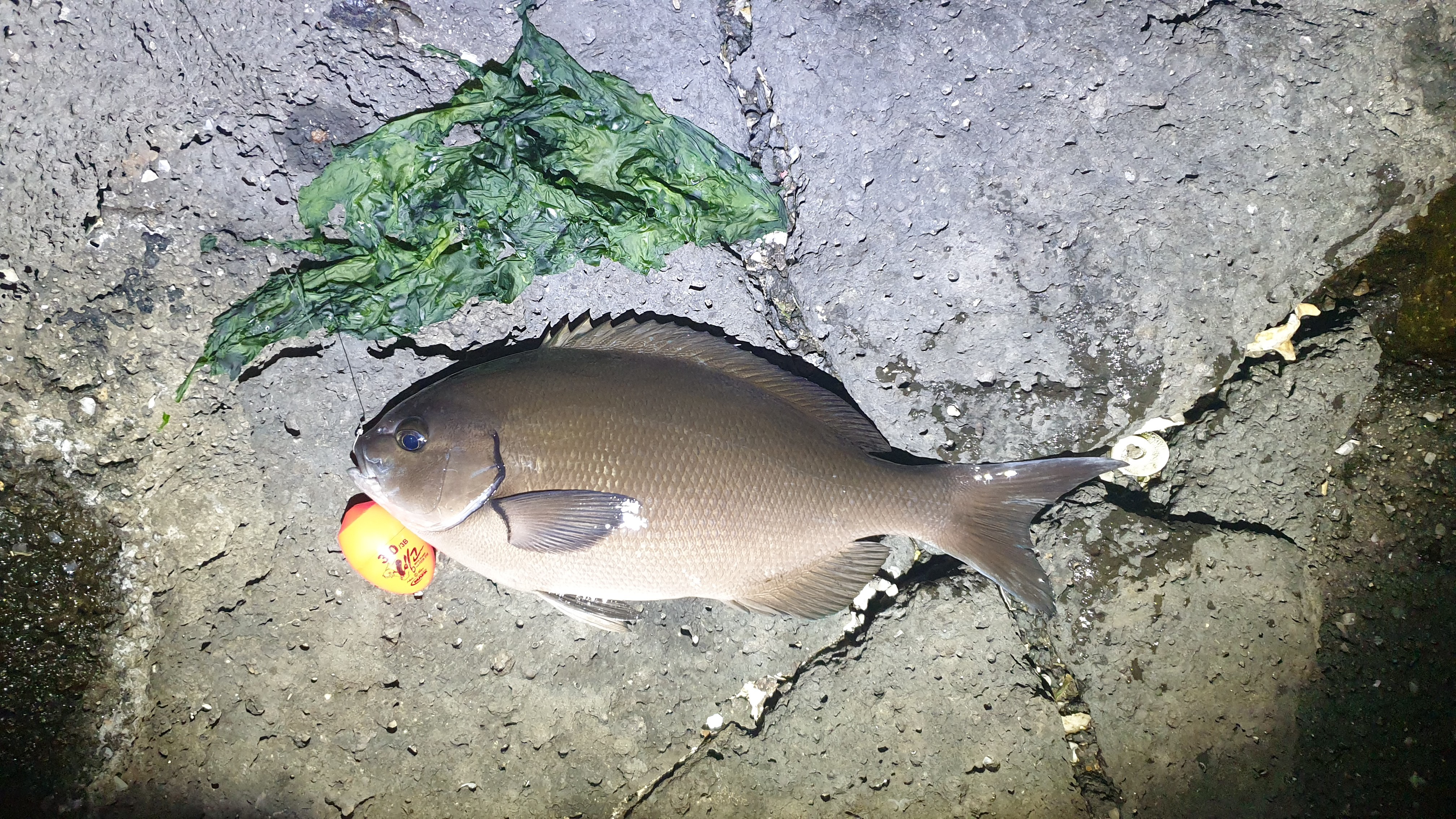 해가지고 전자찌가 물속으로 순식간에 사라지는 입질이 오면 어김없이 긴꼬리벵에돔이 올라온다 ㅎ